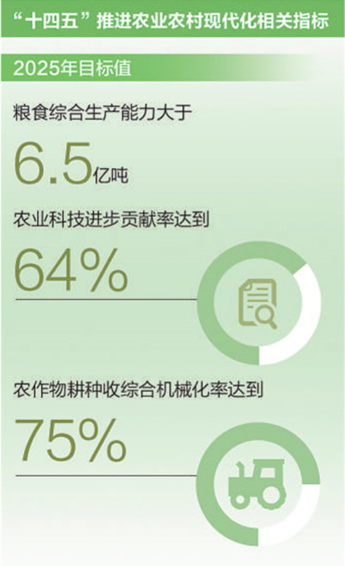 《规划》把保障粮食等重要农产品有效供给作为“十四五”时期推进农业农村现代化的首要任务,三个约束性目标有两个涉及粮食,充分体现了党和国家重农抓粮、稳产保供的坚定决心,体现了粮食等重要农产品在全局工作中的战略地位。《规划》重申粮食安全党政同责,健全抓粮保供工作机制,“经济账”与“政治账”一起算,解决了“谁来抓”的问题;提出十二大保障工程,落实抓粮保供重点内容,保数量、保多样、保质量,这种多层次、全方位的系统设计,解决了“怎么抓”的问题。
