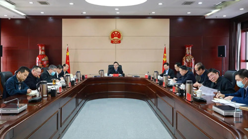 1月7日,省高院召开党组扩大会,传达学习省委党史学习教育总结会议精神,研究贯彻落实意见。党组书记、代院长冯军主持会议。