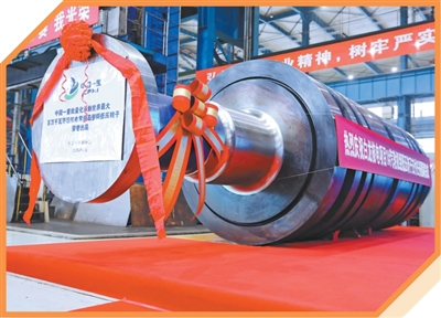 黑龙江齐齐哈尔的中国一重集团生产基地,国产首支自主化标准百万等级常规岛整锻低压转子的完工仪式近日举行。随着红色绸布缓缓揭开,核电常规岛机组的“心脏”部件逐渐展现在眼前,巨型锻件的表面如同镜面一般。