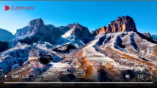 受冷空气影响,近日山西多地出现降雪天气。位于长治市的太行板山,雪后放晴,银装素裹。山村、梯田被白雪覆盖,如同一幅绝美的水墨画。(孙兵兵 张洪波 王志飞)